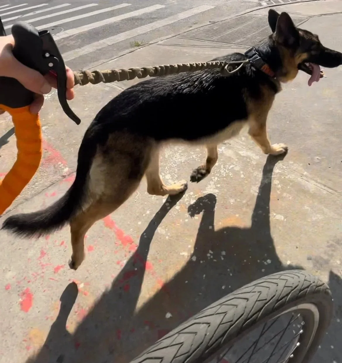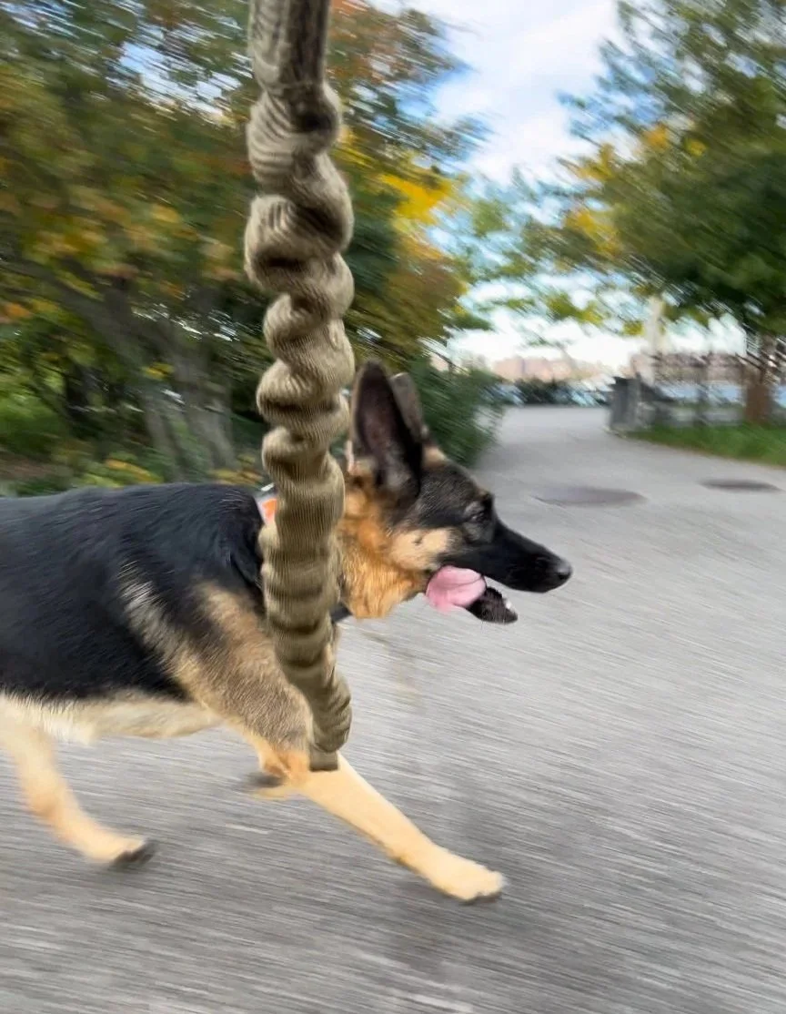 The only realistic way for a human to match the trotting pace of a dog, (especcially a large dog like Kalani ), for extended periods, is by using a bicycle, (or another wheeled devices). The bicycle served a dual purpose: it allowed me to match her natural gait and also functioned as a physical barrier, enabling spatial and emotional management of environmental triggers.